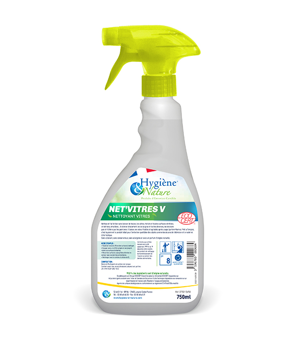 Nettoie et fait briller sans laisser de traces, vitres, miroirs et toutes surfaces vitrifiées, stratifiées,… tout en respectant l’environnement et en préservant la sécurité des utilisateurs. Il élimine totalement les corps gras et taches diverses. Ne laisse pas de traces, ne décolore pas et n’altère pas les peintures.