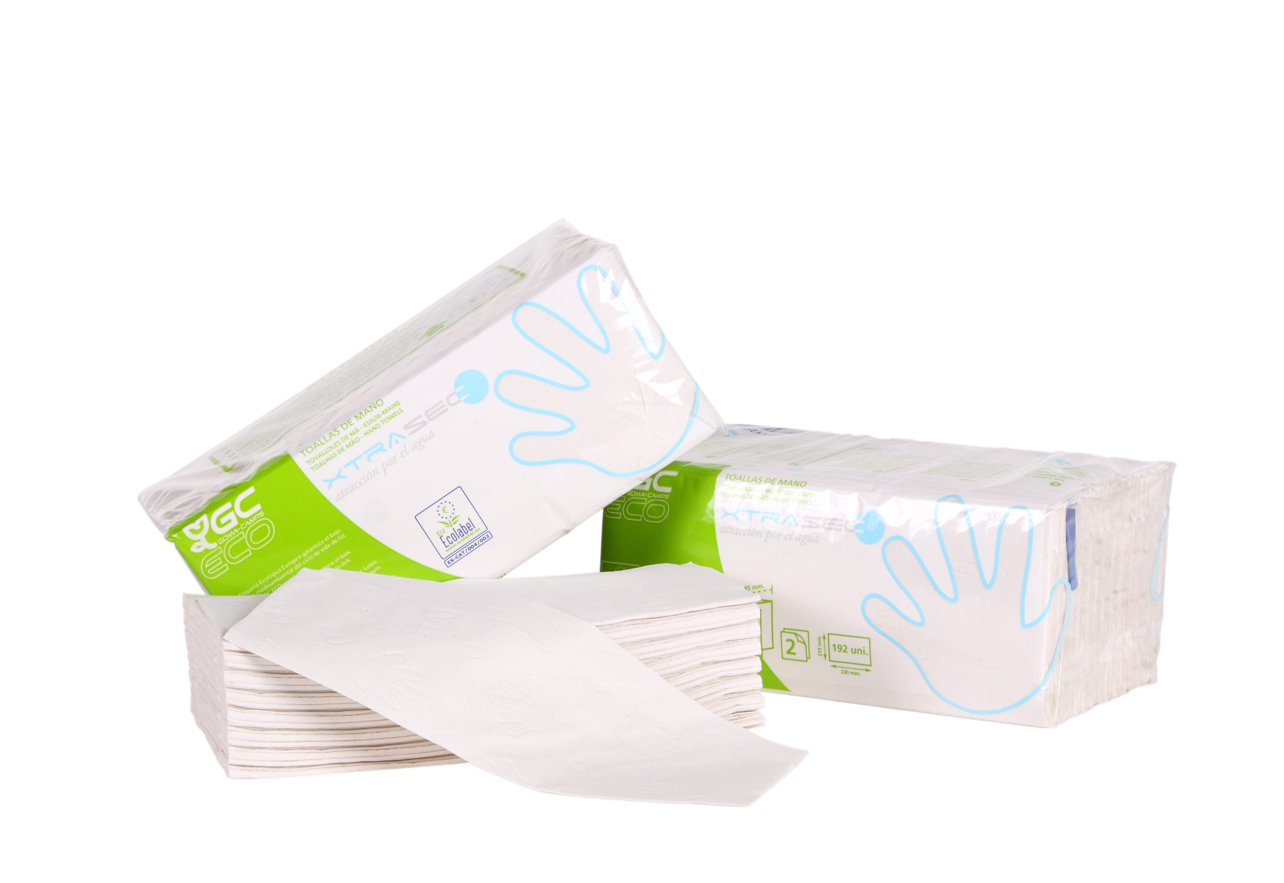 ESSUIE MAINS en feuilles pliées en Z ouate blanche recyclées 2 plis  Goma-Camps  ÉCOLABEL